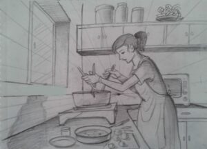 মুনাইয়ের হাতে চাবি দিয়ে রান্নাঘরে এসে লতি নামিয়ে রাখে বিলাসী। কড়াই বসিয়ে তাতে দু’চামচ সর্ষের তেল দেয়। কড়াই গরম হতে হতে তার মাথাও গরম হয়ে ওঠে সেদিনের কথা মনে পড়ায়। এসবের মধ্যেই তপ্ত কড়াইতে লতি আর চিংড়িগুলো ঢেলে দেয়। এরপর জিরের গুঁড়ো, ধনের গুঁড়ো, হলুদ দেয় বিলাসী। নাড়তে থাকে বেশ করে।